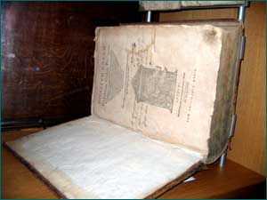 peut également voir un registre mortuaire en parchemin portant